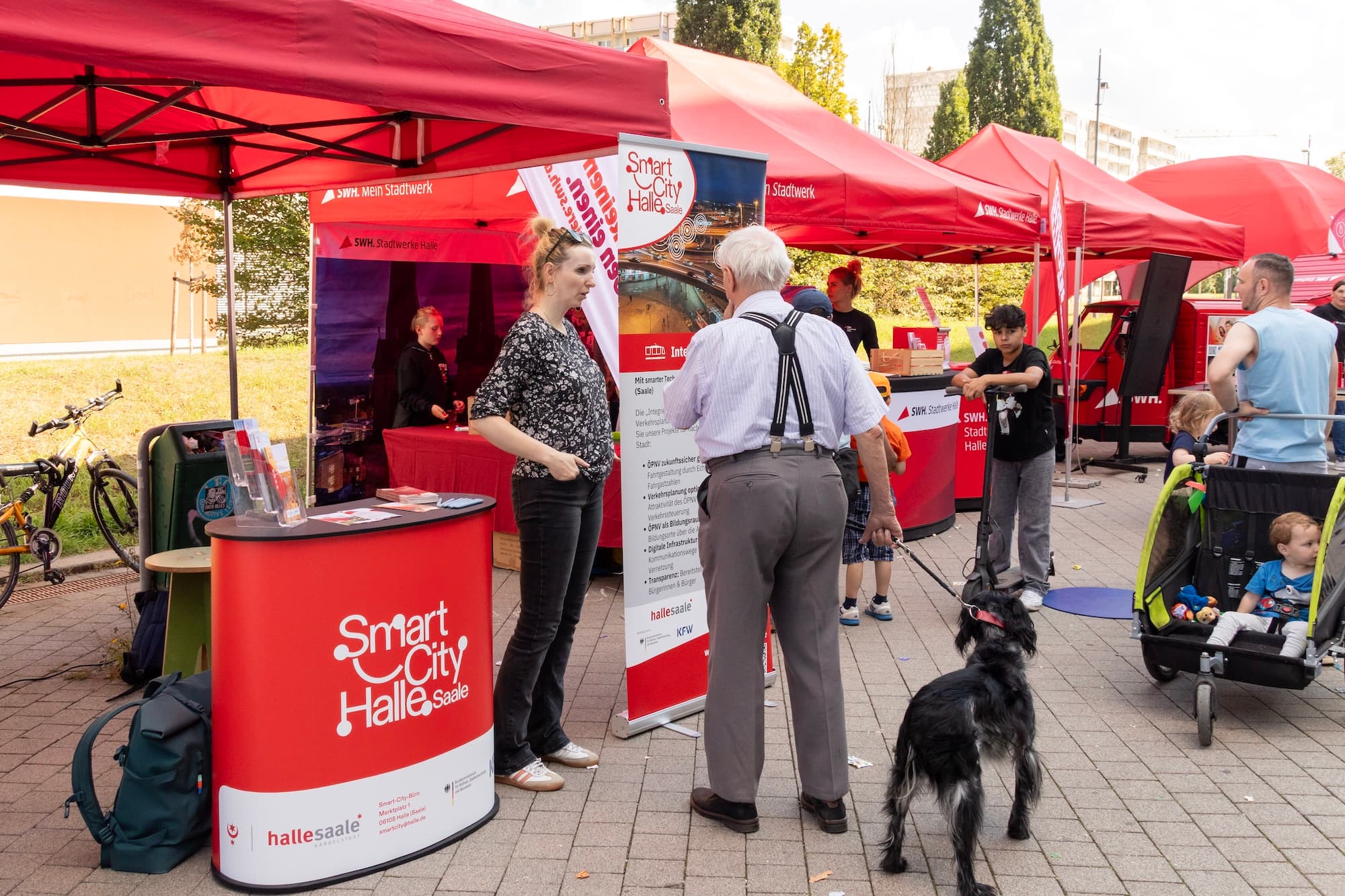 Auch die Maßnahme Integrierte Mobilität, vertreten durch die Stadtwerke Halle, lockte mit zahlreichen Spiel- und Aktionselementen viele Besucher an und konnte dabei die geplanten Digitalisierungsschritte vorstellen und Fragen dazu beantworten.